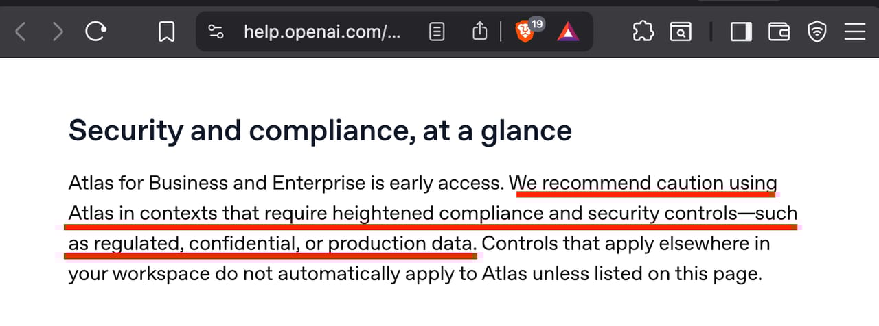 AI Browser Risks: Atlas & Comet — OpenAI’s new AI browser, Atlas, and Perplexity’s Comet can access everything you’re logged into, from emails to CRMs, and even execute commands from malicious web pages. The security community has raised serious concerns, strongly advising against its use even for personal accounts because it can be hacked via websites, reads all logged-in data, and deleted content may still be retained. TechCrunch highlights that “private” modes aren’t truly private. Find out more.